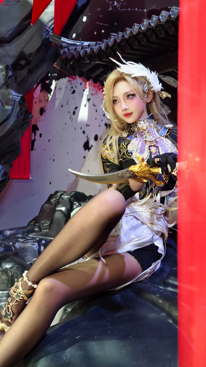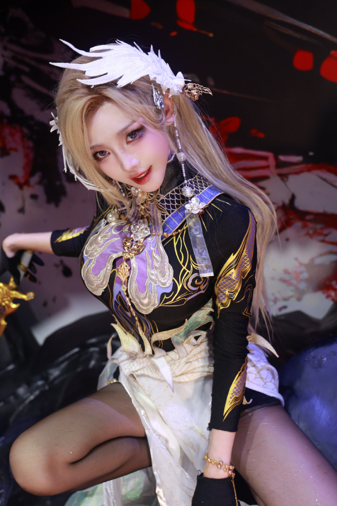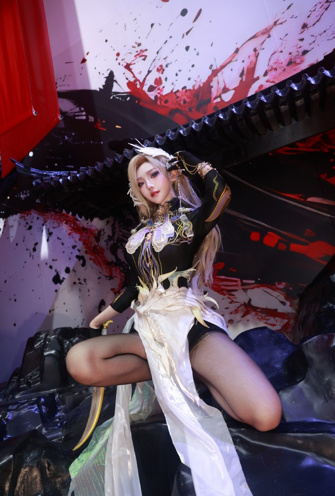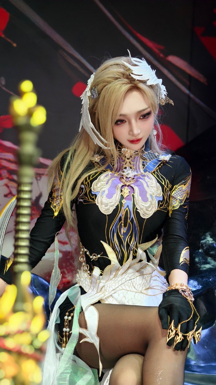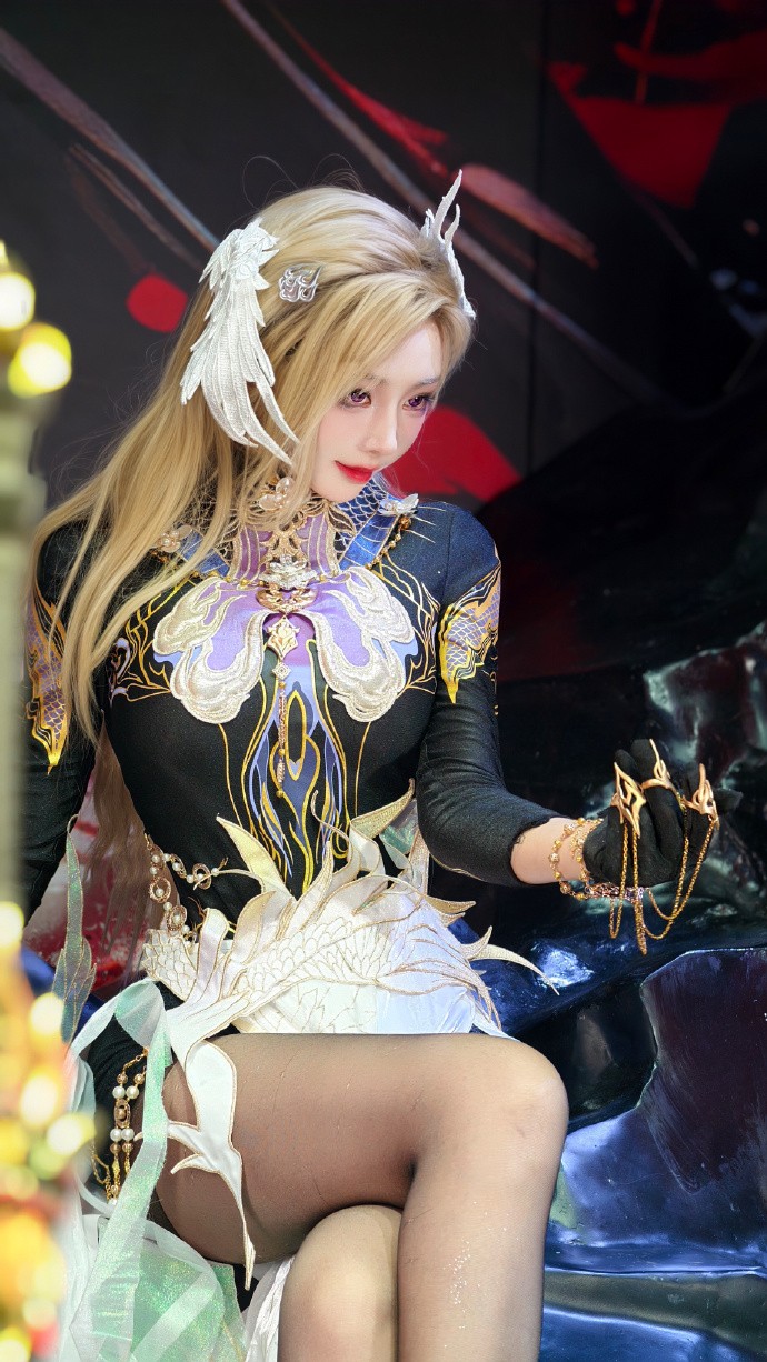 今天cos的是宁红夜倒反阴阳的造型,感觉跟之前的红夜不一样吧?第一眼看到觉得有点像迦南神鹰,问了一下果然是相同的设计元素,难怪我觉得特别喜欢,头上的翅膀头饰是我根据宁红夜遮目双翼眼罩改的,仿佛是从双眸一上一下展开的翅膀,又像是即将合拢~